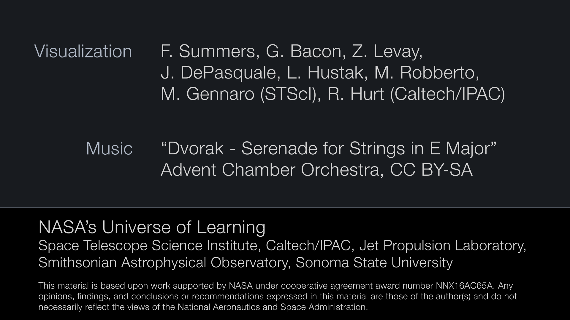 Video: NASA, ESA, Frank Summers (STScI), Greg T. Bacon (STScI), Zolt G. Levay (STScI), Joseph DePasquale (STScI), Leah Hustak (STScI), Massimo Robberto (STScI), Mario Gennaro (STScI), Robert L. Hurt (IPAC)