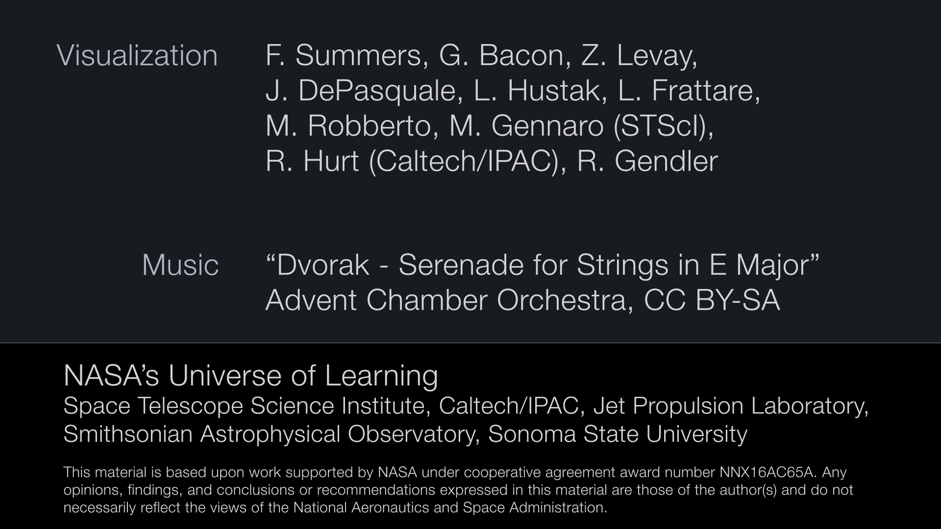 Video: NASA, ESA, Frank Summers (STScI), Greg T. Bacon (STScI), Zolt G. Levay (STScI), Joseph DePasquale (STScI), Leah Hustak (STScI), Lisa Frattare (STScI), Massimo Robberto (STScI), Mario Gennaro (STScI), Robert L. Hurt (IPAC)